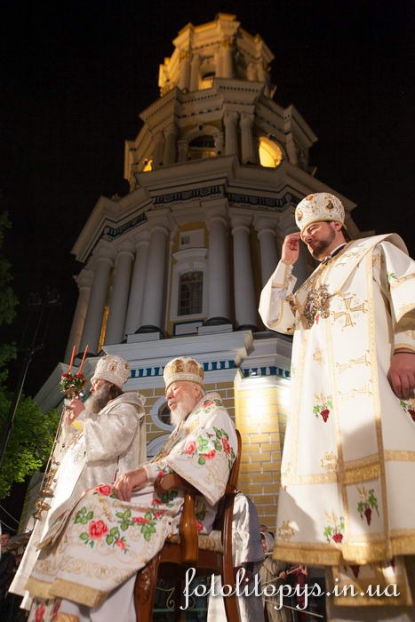 У Великодню ніч з 4 на 5 травня Предстоятель Української Православної Церкви (Московський Патріархат) очолив Пасхальну заутреню та Божественну літургію на площі перед Свято-Успенським собором Києво-Печерської Лаври.
