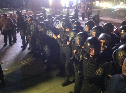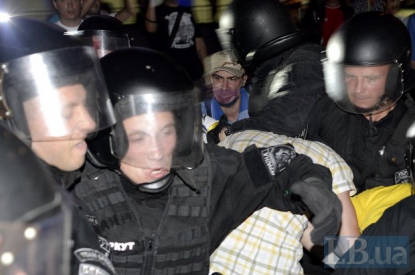 Спецпідрозіл "Беркут" розігнав мітинг на Майдані. Про це повідомив "Українській правді" один з активістів, що знаходиться біля наметів. 4 автобуси "Беркуту" прибули о 23:30, і одразу оточили мітингувальників. Люди стали в коло, співали гімн України, і кричали "зрадники у погонах", "Слава Україні, смерть ворогам", "зека геть". Сутички тривали близько 40 хвилин. "Беркут" по одному висмикував людей, і виносив за руки і ноги. Одному з учасників мітингу стало зле. "Беркут" також відібрав раніше встановлені 2 намети. Людей саджали в автобуси, на яких вони приїхали до Києва. Хтось з націоналістів кинув димову шашку. Начальник "Беркуту" Александров наказав відтісняти людей далі до метро "Хрещатику". Під час тисняви від "Беркуту" дісталося камері 5 каналу. Перед цим представник київського управління благоустрою з 23:15 намагався вручити учасникам мітингу на Майдані повідомлення про незаконність встановлення наметів. Однак люди відмовились приймати повідомлення, заявивши, що не знають, хто власник наметів. Вони також не погодились, що намети — це тимчасова архітектурна форма, як сказано у приписі. "Це спортивні намети, які нічим не кріпляться. Тому люди розглядають їх як просто майно громадян, і не погоджуються згортати", - розповів він. О 22 годині біля наметів було 130-150 осіб. Серед них матері, які прийшли у четвер під МВС, щоб розповісти про знущання правоохоронців на їхніми синами. Там же бул люди з Полтави і Кіровоградщини, які долучились до ходи, і пішки йшли до Києва. Людей з Врадіївки немає. Серед мітингувальників є і київська вчителька Ніна Москаленко, у якої два високопоставлені міліціонери намагаються через рейдерів відібрати будинок. Москаленко каже, що має підтримати цих людей, бо вона така сама жертва свавілля, як і інші люди. Раніше, за повідомленням 5 каналу, правоохоронці заявили, що розганяти мітингувальників не збираються, але пізніше нагадали, що їхня акція має закінчитися до вказаного у заявці часу – до 23.30. Як відомо, близько 200 осіб, незадоволених роботою правоохоронних органів, вийшли на Майдан Незалежності в Києві, аби висловити невдоволення роботою міліції.