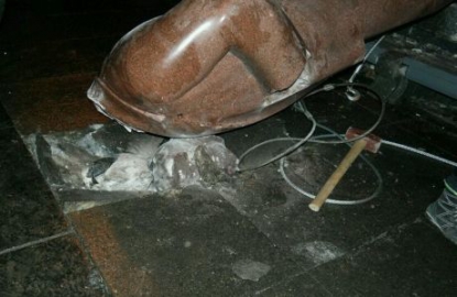 Про це повідомляє Громадське ТВ. Під знесеним пам'ятником молодики скандують "Свобода прийде порядок наведе". Журналіст повідомляє, що дві групи молодиків накинули на нього троси і повалили руками донизу. Пам'ятник провалив гранітну плиту у підніжжя. Молодики, які безпосередньо це вчинили, одразу втекли, прикриваючи обличчя. Міліція через дорогу просто спостерігала, не втручаючись. Потім пам’ятник розбили кувалдами. Люди брали собі уламки у якості сувенірів. На місці присутні сотні людей, а також депутати. Після розвалу пам'ятника народний депутат фракції "Свобода" Андрій Іллєнко приніс частина постаменту на Майдан. Він перервав виступ групи ТНМК на сцені Майдану і тріумфально продемонстрував частину пам'ятника присутнім. Після цього група ТНМК продовжила свій виступ на сцені, повідомляє Інтерфакс-Україна. За інформацією деяких ЗМІ, Іллєнко приніс на Майдан кулак скульптури. ![]() ![]() Українська правда другие новости